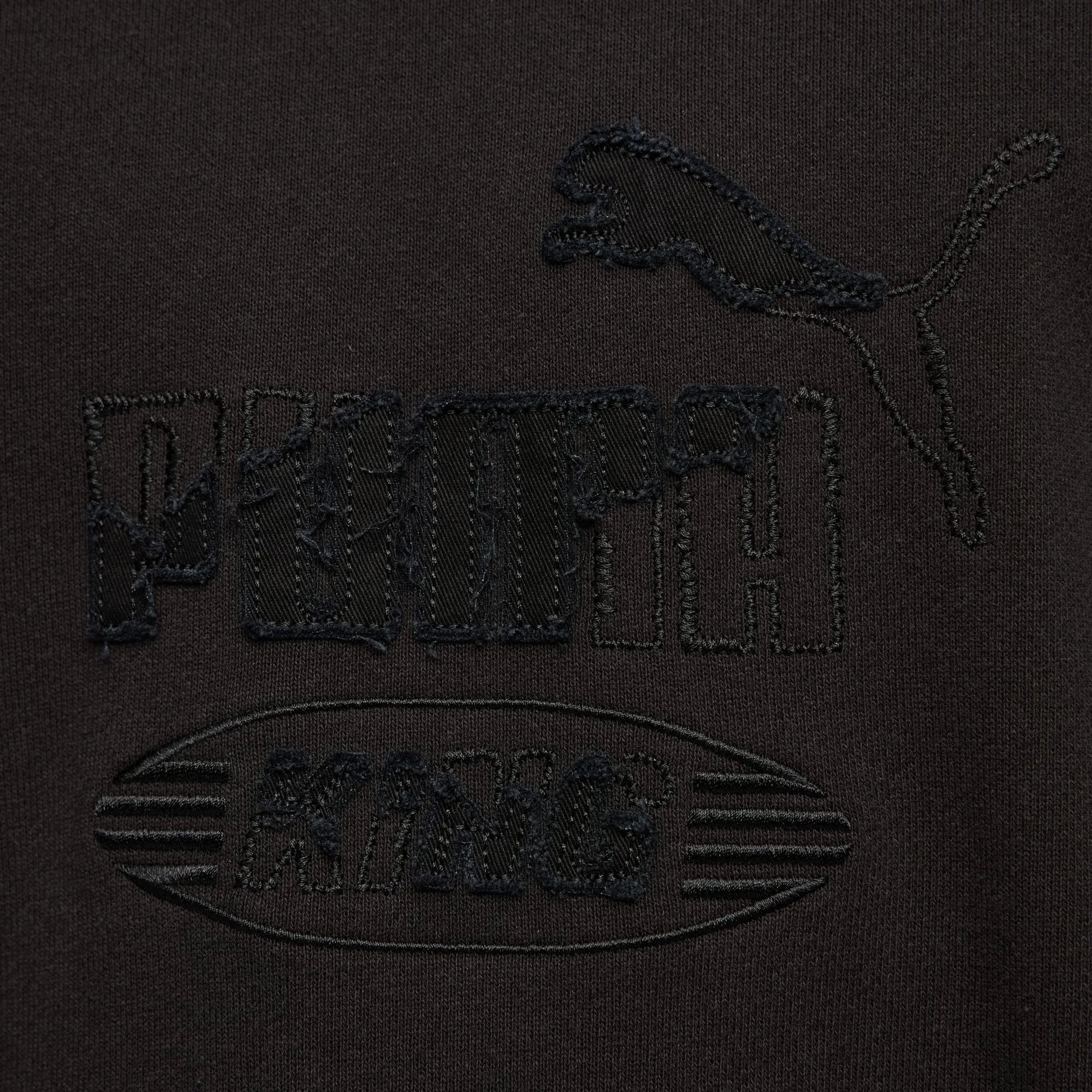 Raw-cut fabric appliqué, embroidery